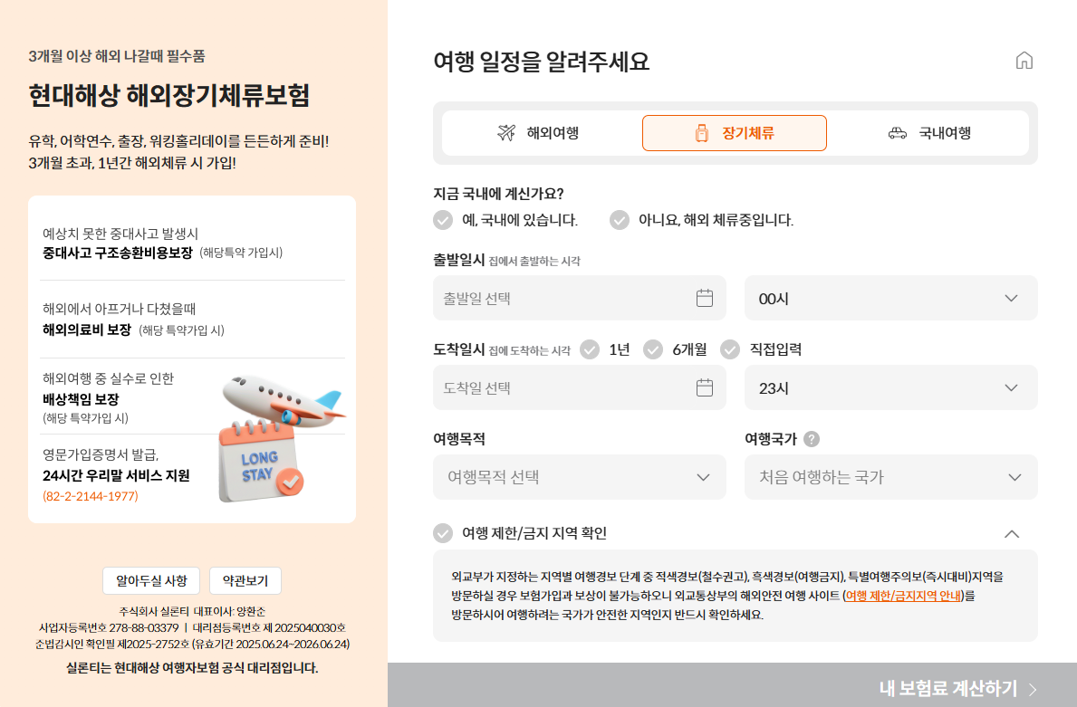 특히 현대해상 여행자보험 인터넷 가입 고객은 고급형 플랜을 선택할 경우, 해외 병원비 직접 결제 및 감염병 보장을 강화할 수 있습니다.