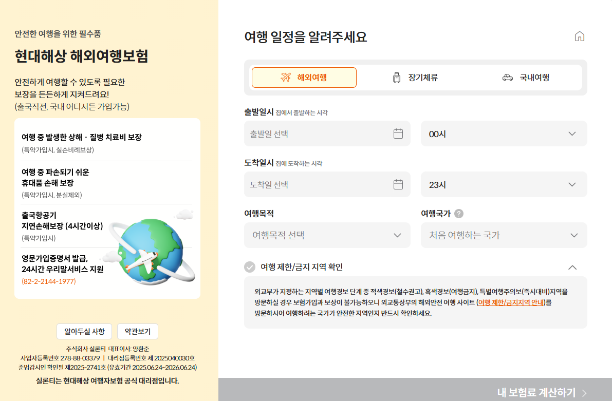 현대해상 여행자보험은 단순한 보험이 아니라, 여행의 안전을 보장하는 필수 파트너입니다.