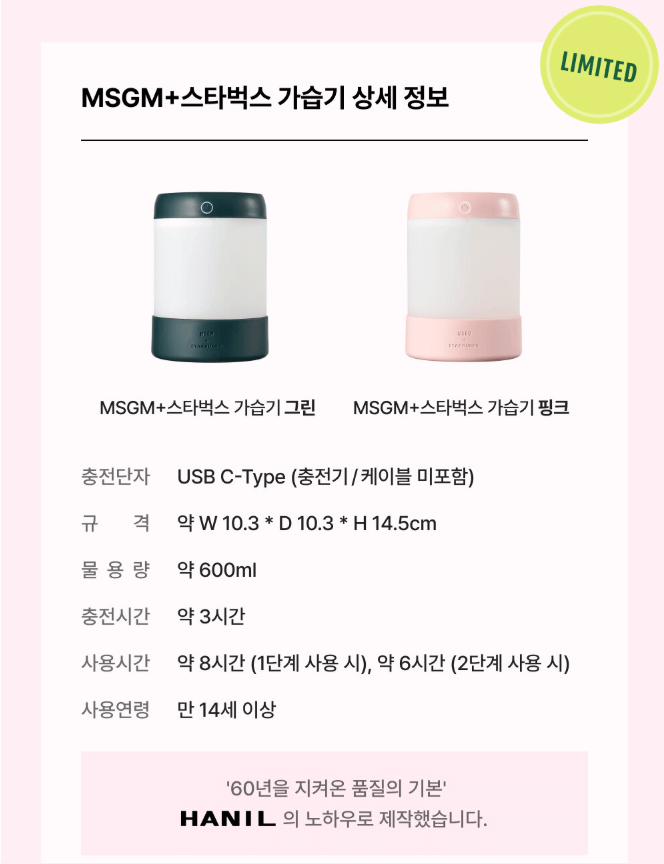 3. 스타벅스 × MSGM 미니 가습기