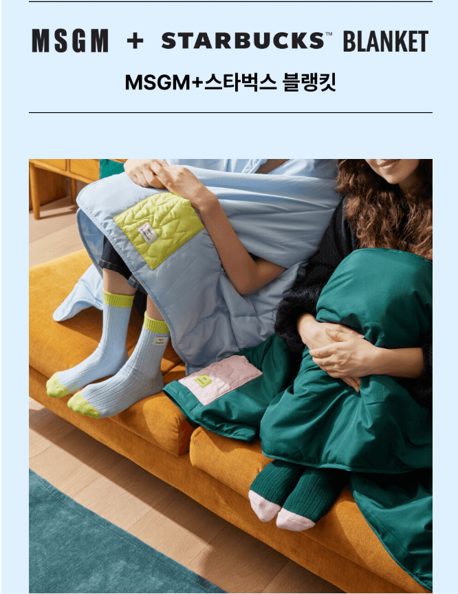 | 증정품 종류 | MSGM 블랭킷, 양말, 가습기, 파우치 + 스타벅스 다이어리 |